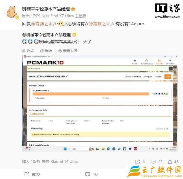 值得注意的是,机械革命的产品经理还透露,未来还将推出无界14X Pro,这一消息无疑让众多轻薄本爱好者充满了期待。虽然目前关于无界14X Pro的具体配置信息尚未公布,但从无界15X Pro的表现来看,我们有理由相信,它将同样是一款性能强劲、续航出色的轻薄本。