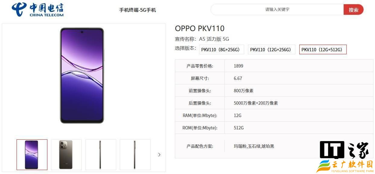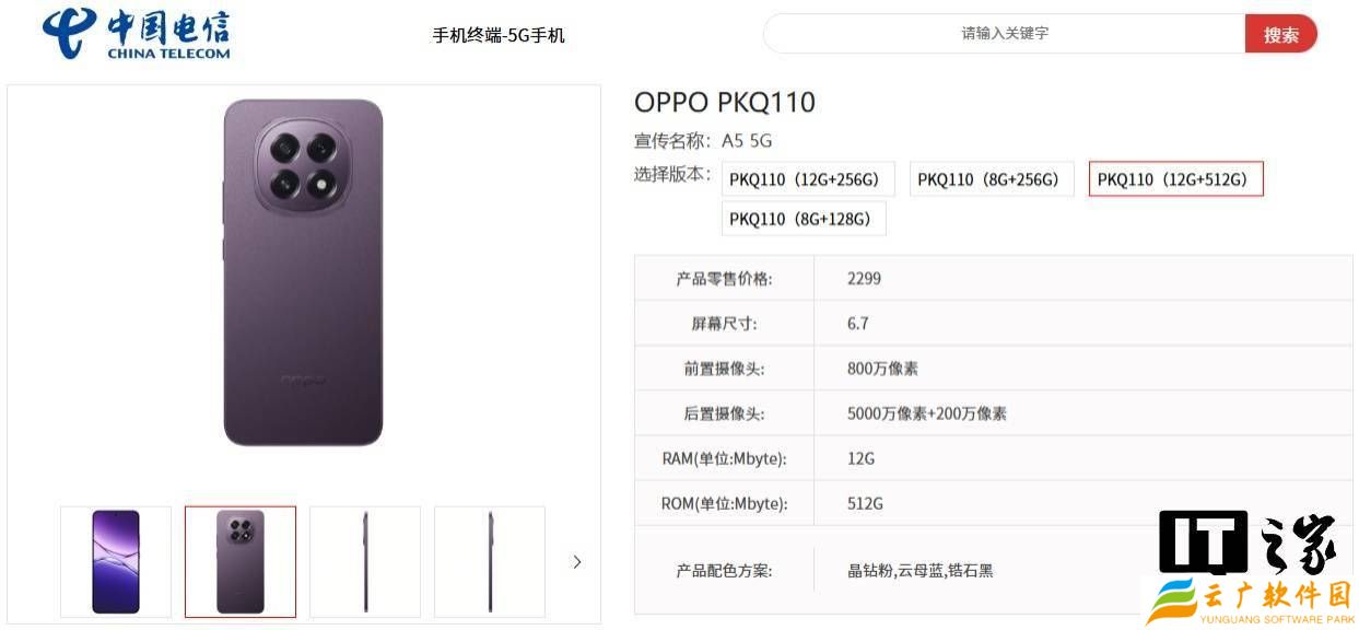 根据中国电信终端产品库的信息显示,OPPO A5系列新机的零售价格将从1499元起。具体来看,OPPO A5(型号PKQ110)提供多种存储配置,其中8GB+128GB版本售价为1599元,8GB+256GB版本为1799元,12GB+256GB版本为2099元,而最高配置的12GB+512GB版本则售价为2299元。