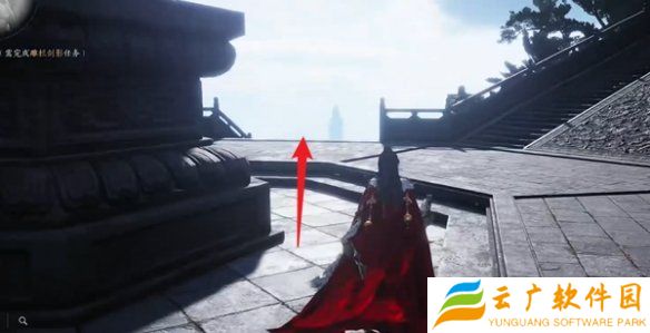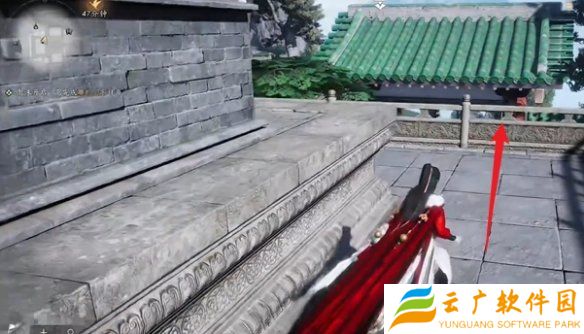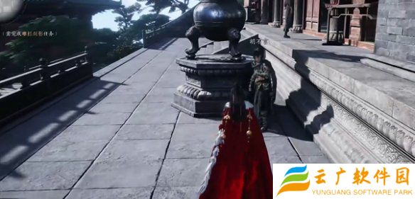 4、进入后,绕到宫殿的前面,找到香炉边的胡不言,进行对话。