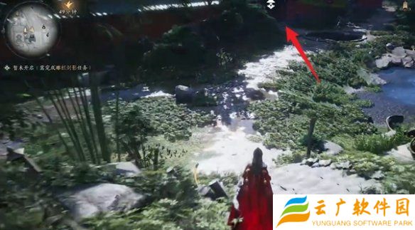 3、到山脚下的时候,从箭头处的门进入。