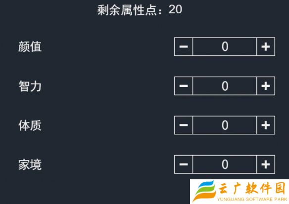 3、分配初始的属性点,有四个属性可以分配,分别是颜值,智力,体质和家境。