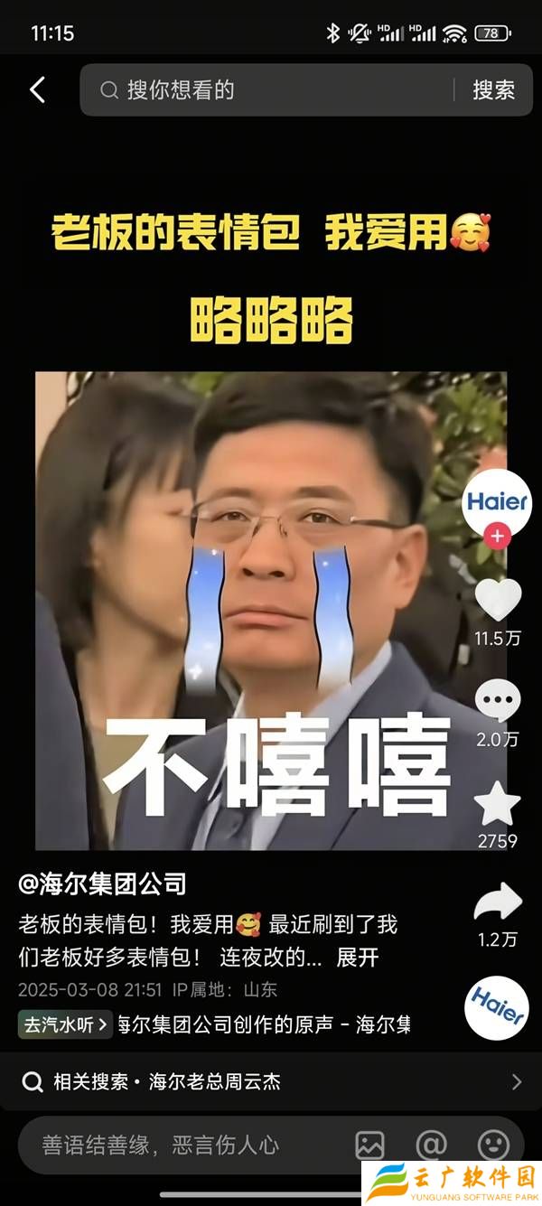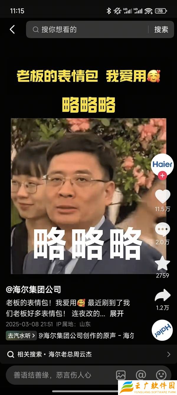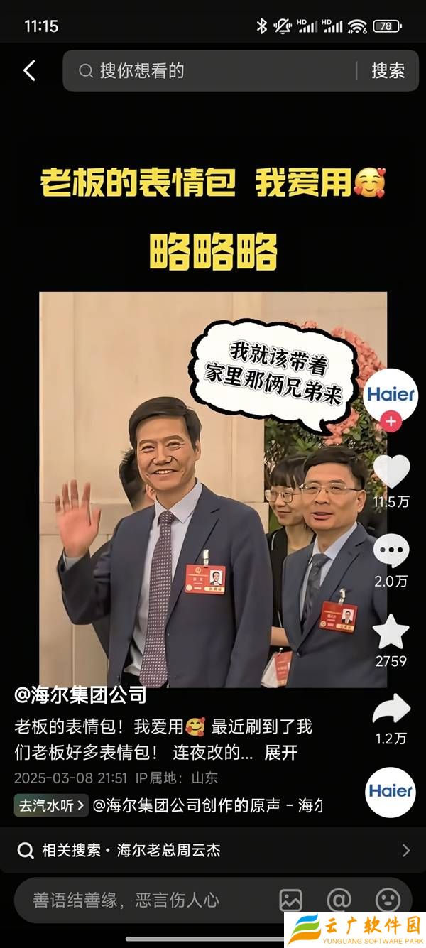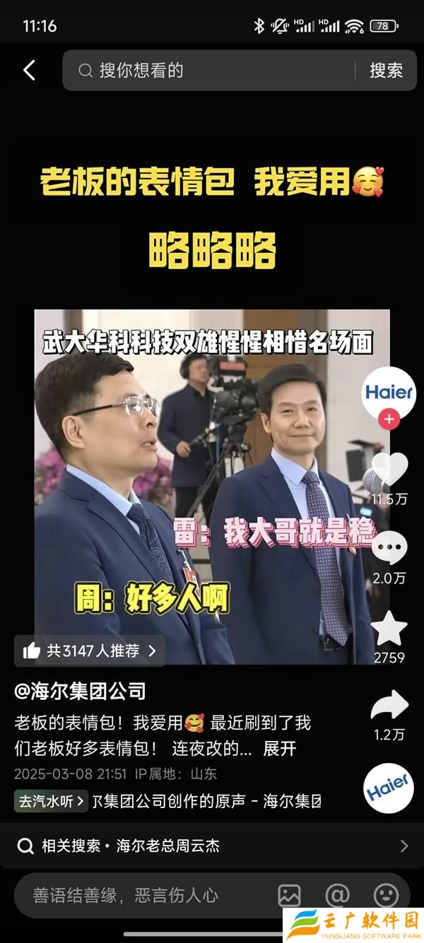 海尔集团官方抖音号也紧跟潮流,发布了一系列周云杰的表情包合集,其中不乏与雷军同框的经典瞬间。这些表情包搭配上雷军的“专属BGM”,更是让人忍俊不禁。海尔的这一举措不仅展现了品牌的幽默感,也进一步拉近了与消费者的距离。