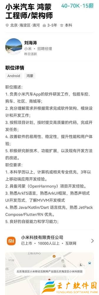 近期,科技界传出了一则引人瞩目的消息:一家业界知名的科技公司,正在北京积极招募与“小米汽车鸿蒙工程师/架构师”职位相关的专业人才。据透露,该岗位的核心职责聚焦于小米汽车APP的软件开发,涵盖车辆控制、购车服务、社区互动及商城等多个功能模块,且特别强调应聘者需具备OpenHarmony项目的实战经验。这一招聘信息似乎预示着,小米汽车APP的鸿蒙版本开发工作已悄然拉开序幕。
