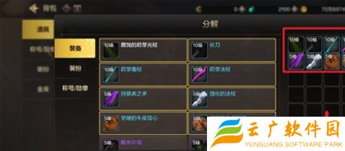 3、随后,在分解界面内,挑选想分解的装备进行选定,确认后即可执行分解操作。
