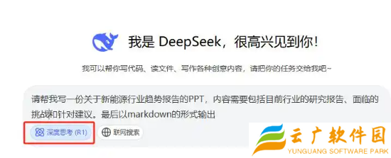 1、首先使用deepseek生成ppt大纲,然后点击深度思考(R1)功能。