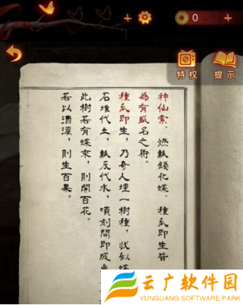 5、然后使用刀币打**间的抽屉,获得种子,把种子和纸灰放到碎石堆,接下来会直接长成大树,获得葫芦;