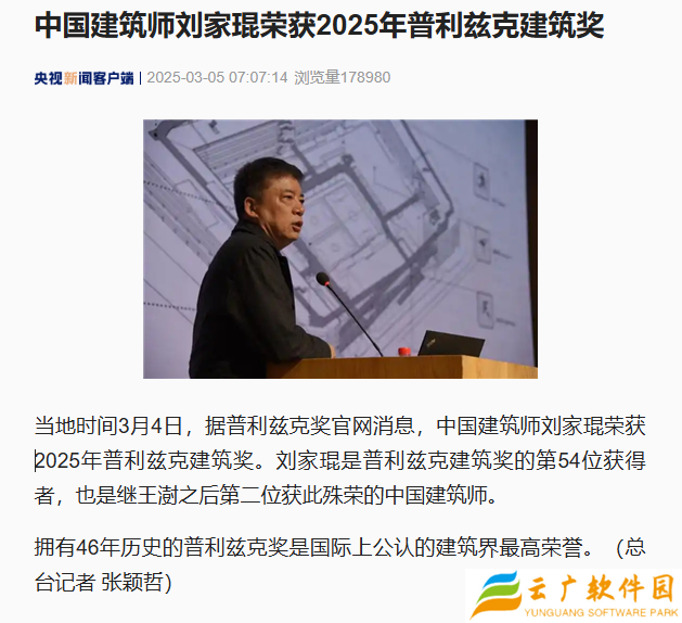 本站 3 月 5 日消息,当地时间 3 月 4 日,普利兹克奖官网正式宣布,2025 年度普利兹克建筑奖授予中国成都建筑师 —— 刘家琨。