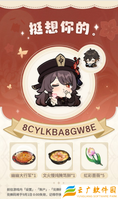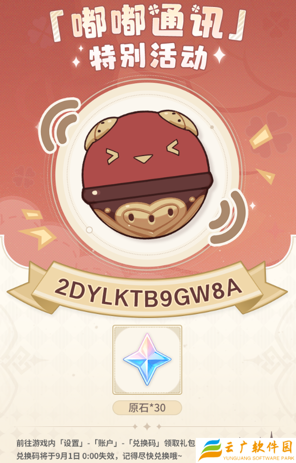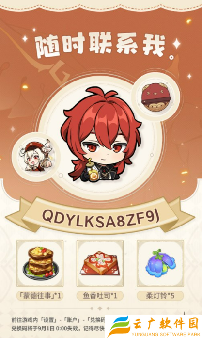 3-兑换码将于9月1日 0:00 失效,记得尽快兑换哦~