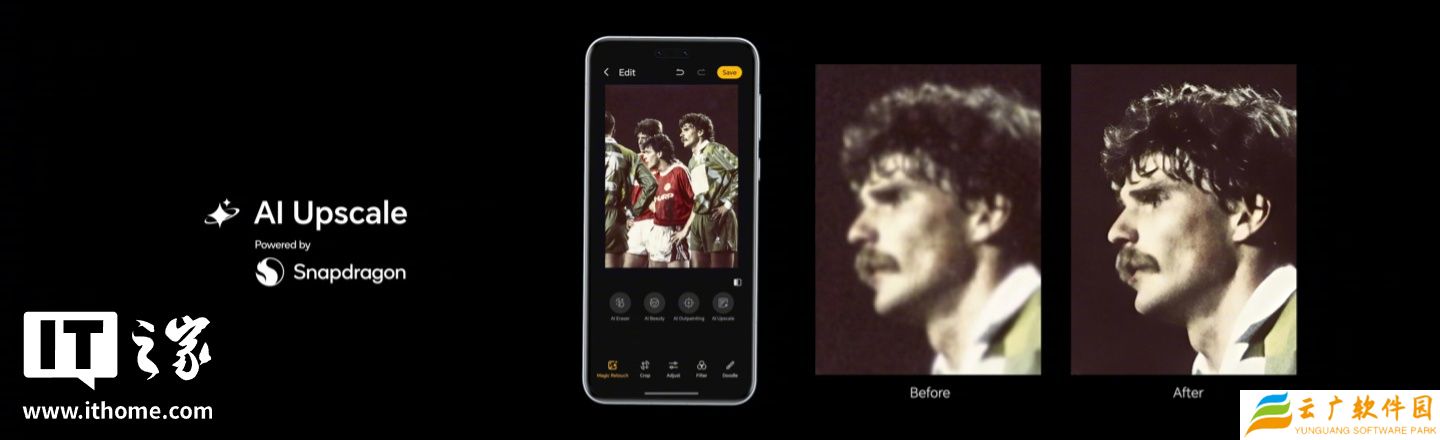 另外,在高通骁龙 8 至尊版处理器加持下,荣耀推出了 AI 超清影像功能。该功能专门恢复褪色旧肖像,智能处理老照片问题,宣称“让珍贵影像再现清晰与生动”。