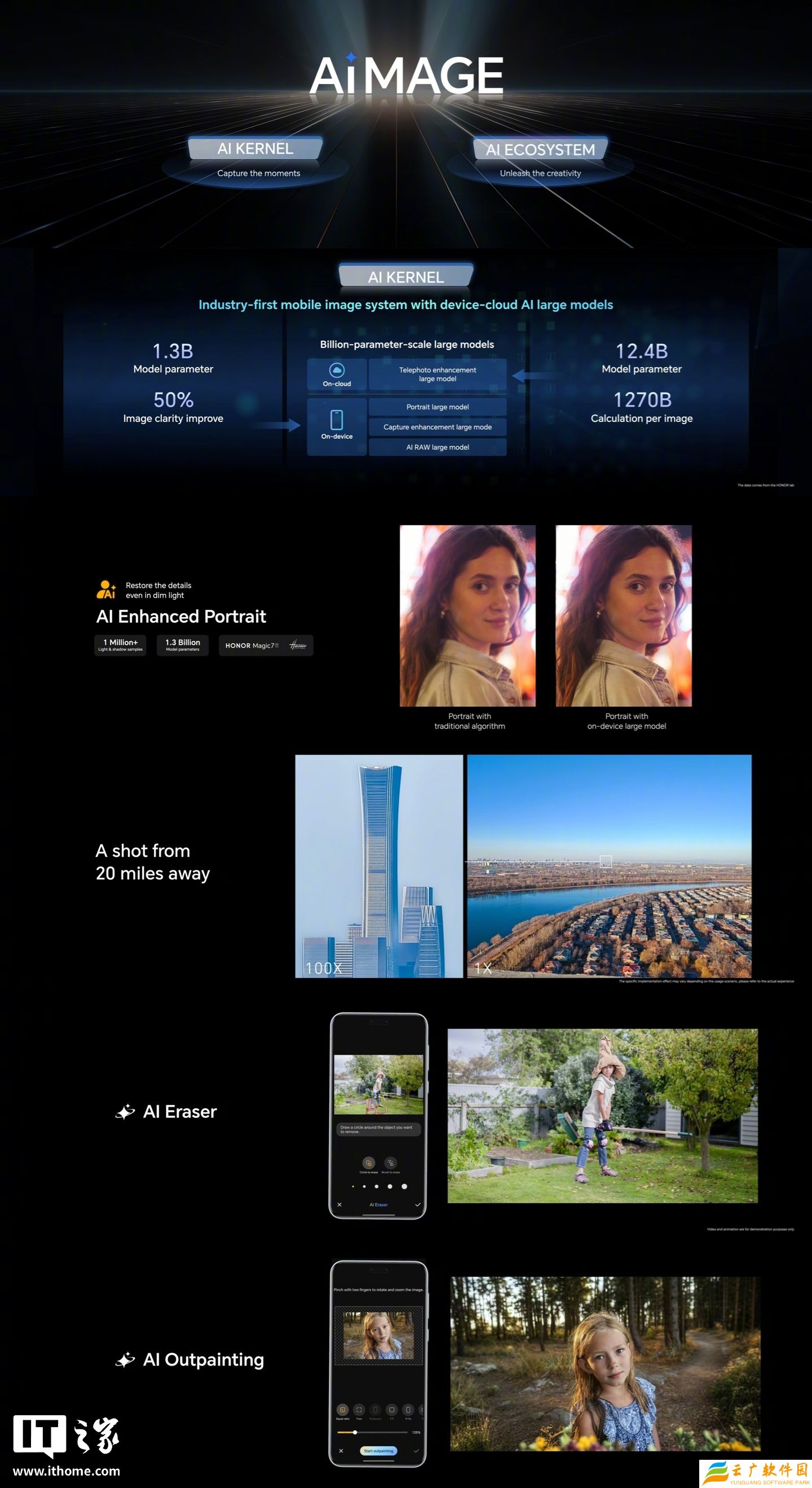 本站 3 月 3 日消息,荣耀在昨日晚 2025 年世界移动通信大会(MWC)上正式推出以 AI 为中心的影像品牌 AIMAGE,含端云协同的 AI KERNEL 与 AI 生态系统。据介绍,端侧大模型提高图像清晰度,云端大模型助力长焦摄影,AI 修图,端云协同实现全场景影像突破。