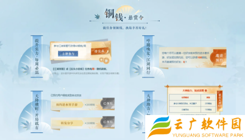 点击活动页面的混江湖游戏,完成小游戏即可获得铜钱。