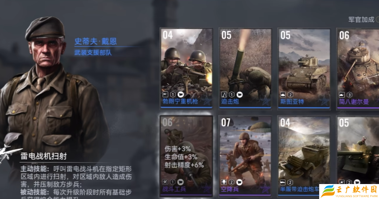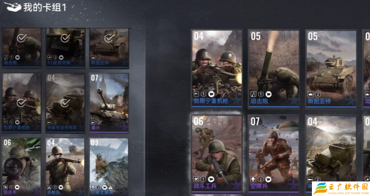 如果玩家选择的是美军,在游戏内,必须率先获取机械化步兵卡牌、美军伞卡牌、以及战斗工兵卡牌,这几个必带的卡牌单位。