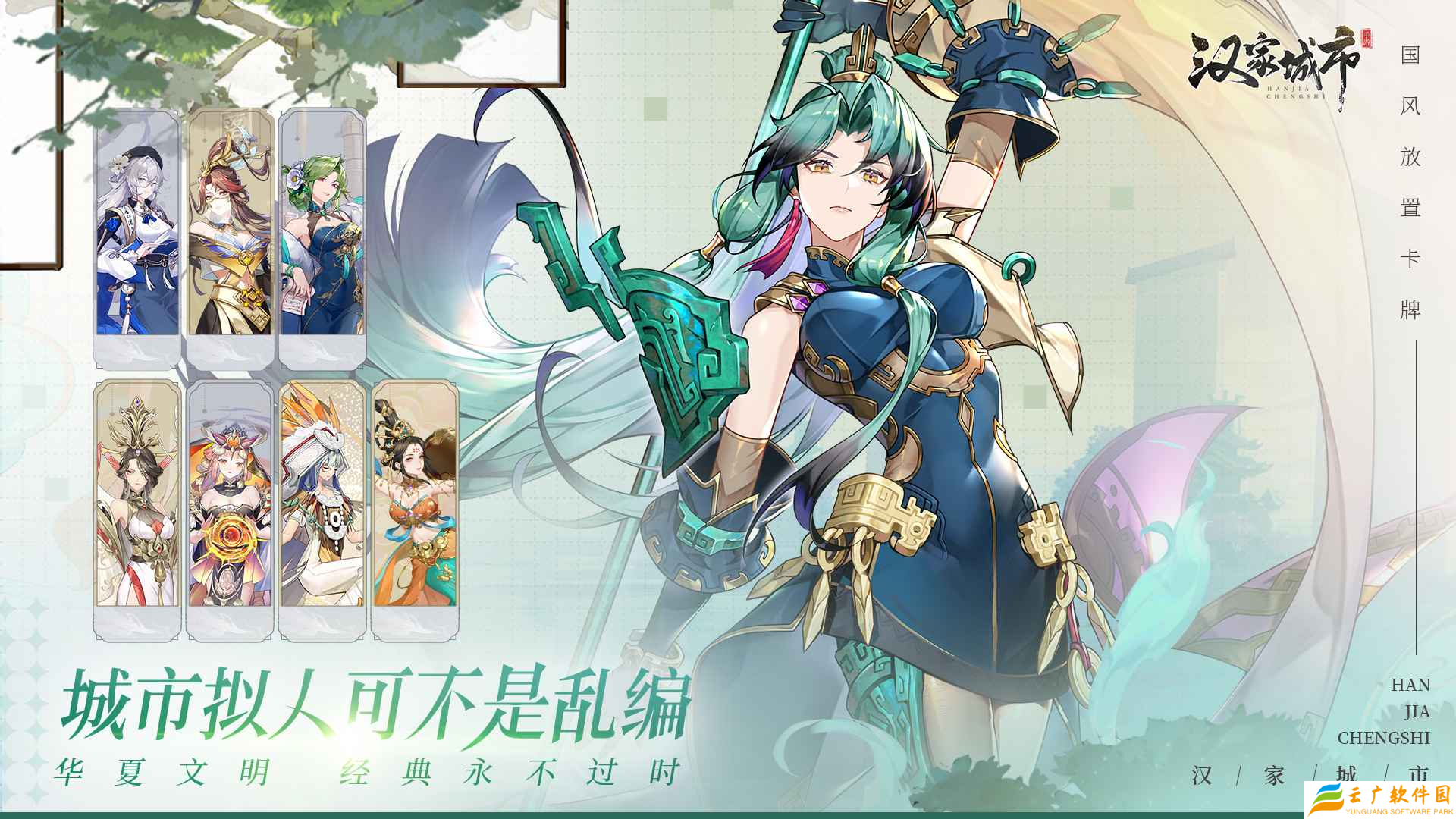 汉家城市是一款国风类的卡牌游戏,游戏的主要制作灵感就是来自于我国的不同城市,游戏用拟人化的设计给这些城市注入了灵幻,让每个城市都有了独一无二的形象,每个城市在经过拟人化以后,都变成了不同的女性角色,比如说,潮州拟人化后变成了具有知性美的茶艺美女、洛阳则化身成为了霸气范十足的女王形象,每个城市在拟人化后,都把城市的风韵特色汇聚到了人物的身上。
