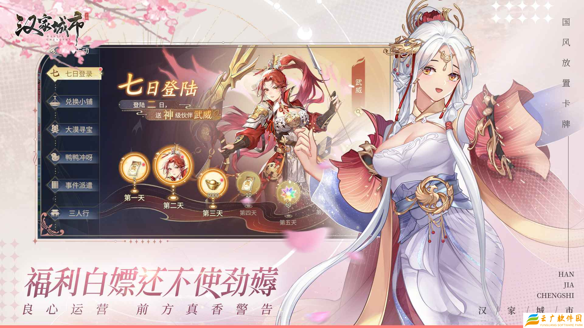 别看汉家城市是一款卡牌游戏,可是这款游戏玩起来却极为的轻松,玩家在游戏中可以解放自己,在这里,你不需要氪金,也不需要每天不停的肝任务、副本等,只要每天上线动一下手指头,就可以让伙伴们的实力得到大幅度的提升。