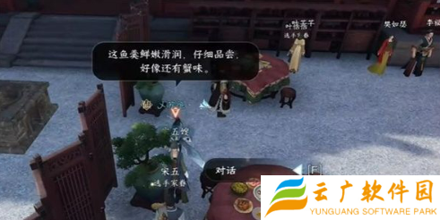 6、击败之后,我们与李福进行对话,需要找好鲜鱼后再返回樊楼【可在城内外水域垂钓,准备一条鲜活的草鱼】,我们把获取到的草鱼给李福即可帮助刘娘子。