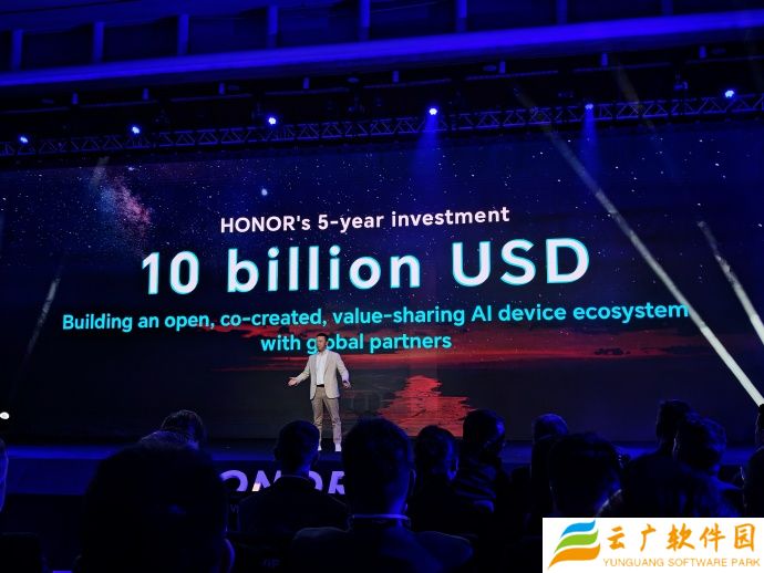 荣耀 CEO 新任李健宣布,未来 5 年荣耀将投入 100 亿美元,与全球合作伙手共建 AI 设备生态。值得一提的是,这也是李健首次公开亮相。