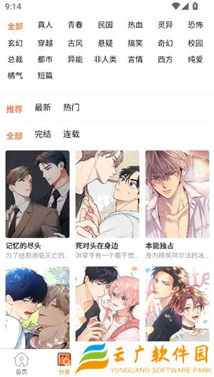 3、能在分类中设置标签,筛选喜欢阅读的漫画类型